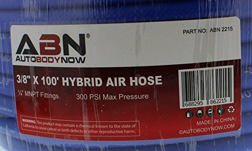 ABN Air Hose – 100’ Feet, All Weather (-22F to 149F), Lightweight, Hybrid, 1/4" Inch MNPT Ends, 3/8" Inch, 300 PSI
