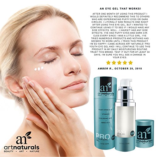 -. Feature : Art naturals' youth eye gel is specially formulated for the delicate skin around your eyes / Natural ingredients hydrate, restore and firm eye area skin, reducing lines and wrinkles, bags and puffiness / Peptides and plant stem cells help boost collagen production / Hyaluronic acid deeply hydrates, while aloe Vera and jojoba oil sooth and add antioxidant power / Paraben free and cruelty free