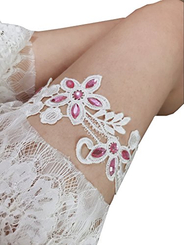 Rhinestones Lace Bridal Garter Belt wedding garter p24 (Pink)
