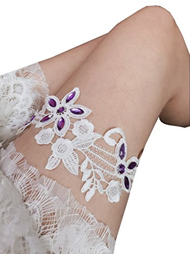 Rhinestones Lace Bridal Garter Belt wedding garter p24 (Purple)