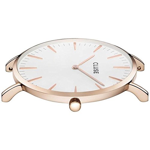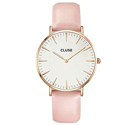 This La Boheme model features an ultrathin case with a 38 mm diameter, crafted with precision for a sophisticated and elegant result. Eggshell white and rose gold are combined with a pink leather strap, detailed with a rose gold clasp. The strap can be easily interchanged, allowing you to personalise your watch.