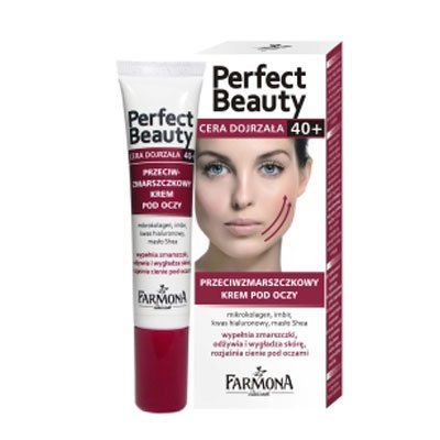 -. Feature : Farmona Perfect Beauty Anti-Wrinkle Under-Eye Cream 0.53 fl. Oz. / For mature skin 40+. Anti-wrinkle under-eye cream of a light, delicate texture for care of skin over 40 years of age. / Rich cream formula was created based on the latest developments in biotechnology. / Thanks to a unique combination of highly concentrated active ingredients. Microcollagen, Hayluronic Acid, Ginger, Guarana, D-Panthenol, Shea Butter. / The crea effectively fights against the consequences of time passing, providing multi-action, anti-aging result for mature skin.