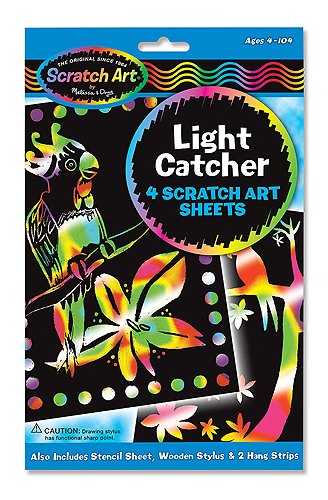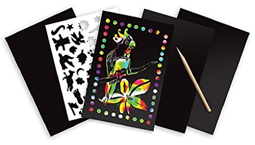 -. Feature : It's simply magic, try 4 different exciting scratch magic effects / Scratchlite "stained glass" sheets set your creativity free / Simply draw your masterpiece by scratching on the white coated paper and watch spectacular colors magically appear / Hang your "Stained Glass" pictures in a window and amaze your friends with the dazzling display / This kit includes 4 sheets of Scratchlite "Stained Glass" Sheets, 1 wood drawing stylus, 1 Stencil with more than 30 amazing shapes and instructions for hours of fun
