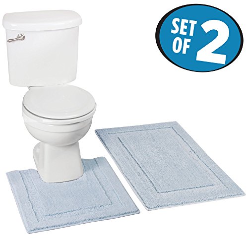 mDesign Contour Rug and Accent Shower Rug Bathroom Combo Pack - Set of 2, Water