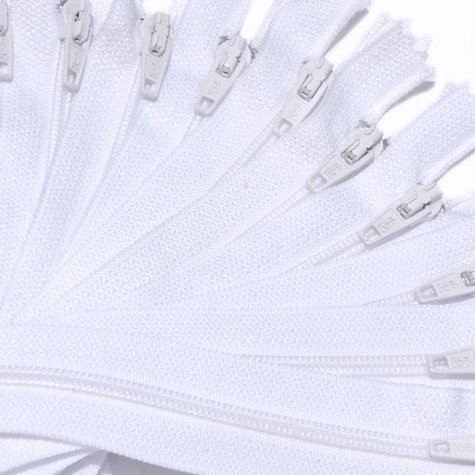 7" Nylon Coil YKK Zippers-100% Made in USA~ Closed Bottom ~ 501 White (12 Zippers / Pack)