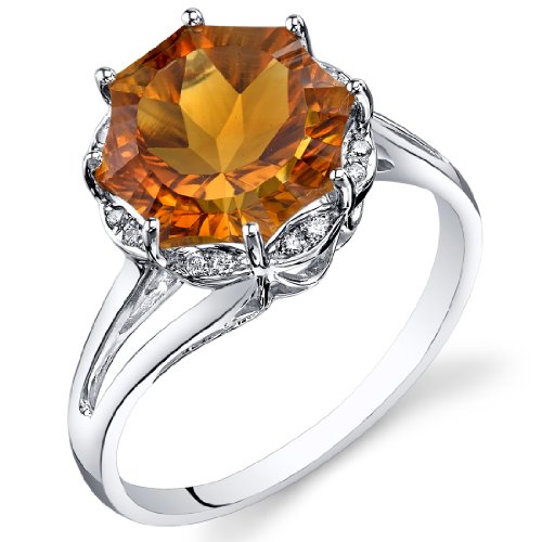 -. Title : シトリンダイヤモンドリング14 KTホワイトゴールドスノーフレークカット3.8カラット