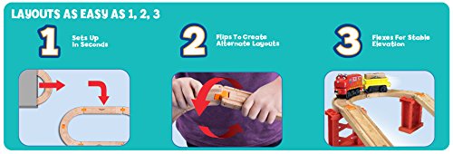 Guide Brewster under the overpass and around and up to the delivery destination to receive his cargo. Once loaded, send him back down and around to the destination point to make the delivery! This Chuggington Wooden Railway playset features a classic Figure-8 layout. Kids love the fun of going over and under the set while taking their engine on adventures to pick up and drop off the Cargo, just like they see in the show! The Chuggington Wooden Railway Cargo Crossover includes 1 loop of 1-2-3 track, with additional loose wooden railways pieces to expand the layout, making this the perfect first wooden train set for your child! Compatible with other Chuggington Wooden Railway Sets.Feature