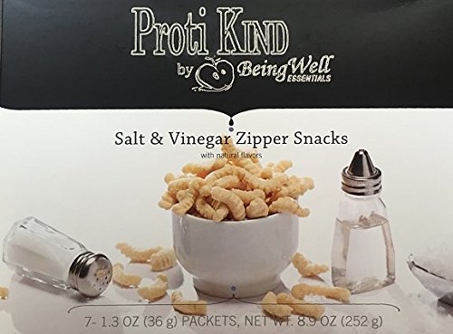 Studio : Being Well Essentials Publisher : Being Well Essentials Binding : Health and Beauty Product Description Move over, potato chips! Delicious, tangy salt and vinegar flavors add a lively zing to crispy Proti Kind Zipper snacks. With 15 grams of protein these savory snacks will quickly become a favorite. 0