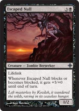 -. Binding : Toy -. Brand : Magic: the Gathering -. EAN : 0769294142550 -. Feature : Magic: the Gathering - Escaped Null - Rise of the Eldrazi - Foil / Black -. Label : Wizards of the Coast -. Manufacturer : Wizards of the Coast -. MPN : 4142550 -. PackageQuantity : 1 -. PartNumber : 4142550 -. ProductGroup : Toy -. ProductTypeName : TOYS_AND_GAMES -. Publisher : Wizards of the Coast -. Studio : Wizards of the Coast -. Title : Magic: the Gathering - Escaped Null - Rise of the Eldrazi - Foil by Magic: the Gathering -. UPC : 769294142550