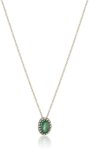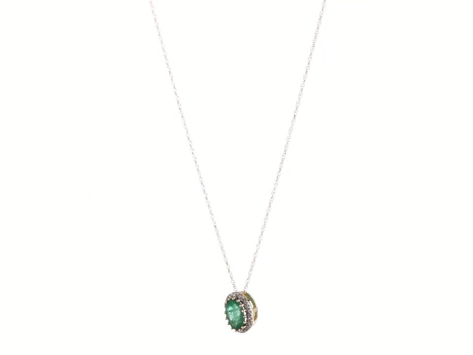 14k Yellow Gold Oval Emerald and Diamond Pendant Necklace, 18"