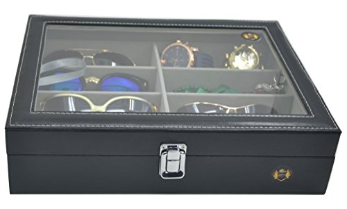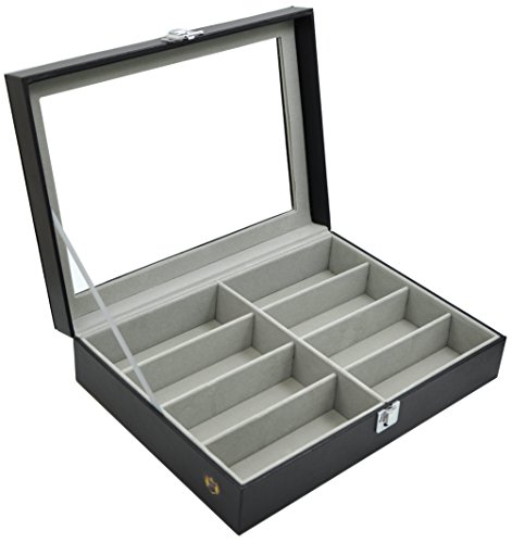 - Feature : KEEP AWAY FROM POOR QUALITY! High Grade PU Leather surface that is moisture-proof and easy for cleaning and maintenance. Comfortable and soft velvet interior / AMPLE SPACE - Case Szie:13.19" x 9.64" x 3.27"(33.5 x 24.5 x 8.3cm) (L x W x H); Individual compartments 6.30" x 2.17" x 1.81"(16 x 5.5 x 4.6cm)(L x W x H). This highly sunglass case sizing is great for oversized sunglasses with 8 deep enough slots hold glasses in place / YOUR EXCELLENT CHOICE: High quality and Clear glass gives you an open view and find your favorite treasure with this unique design when it closed. Perfect for storing and displaying your favorite eyeglasses and sunglasses in one convenient and attractive place. What a perfect place for storing all of your glasses! / PERFECT GIFT for FRIENDS! High quality PU leather box with attractive appearance, simple structure, fine workmanship and sturdy construction. Perfect for home and business use, and a wonderful gift idea for your friends / 100% SATISFACTION GUARANTEE - This exquisite and practical eyeglasses storage comes with a 100% Satisfaction Guarantee. We are committed to delivering a 5 stars customer experience