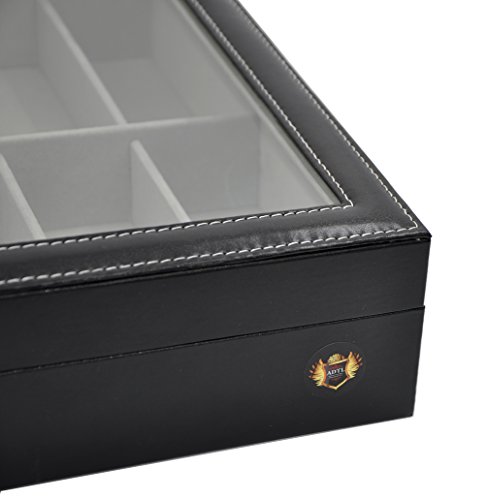 - Title : ADTL 8 Slots Eyeglass Sunglass Case Black Glasses Display Storage Leather Organizer with Glass Top Lid