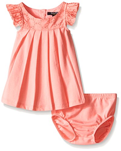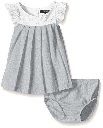 Nautica jersey pleat dress with eyelet yoke and sleeve