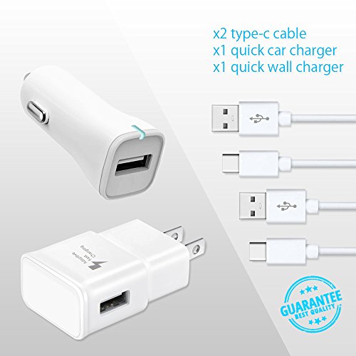 Galaxy S8, S8 Edge Adaptive Fast Charger Bundle ( 2 Type-C Cable , Car Charger , Wall Charger )