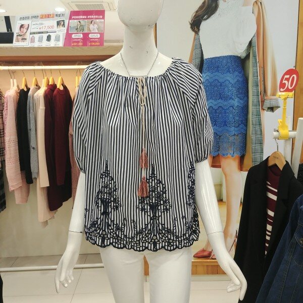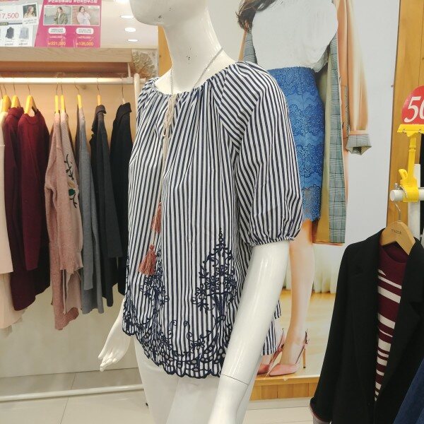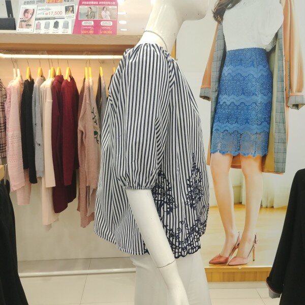 스트라이프 무늬에 아랫단에 자수로 포인트를 준 멋스러운 블라우스.편하게 입어도 러블리해 보이는 블라우스.