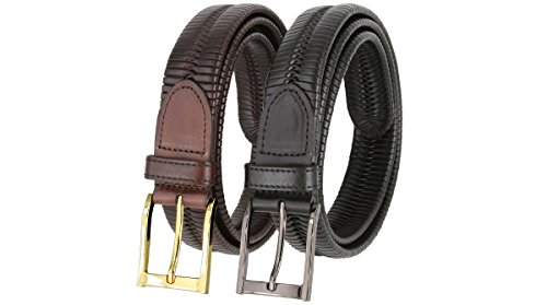 Binding : Apparel Product Description 30800 Center Weaved Woven Leather Dress Belt. 1-1/4" = 32MM Genuine Leather Dress Belt. Center Line Adjustment Holes. Stitched Brushed Plated Buckle and Leather Loop. Belt measurement from the fold where the buckle is to the tip of the belt: