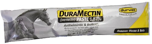 Studio : Durvet/equine D Publisher : Durvet/equine D Binding : Misc. Product Description Duramectin Paste provides effective treatment and control of the following parasites in horses: Large Strongyles (adults), Strongylus vulgaris (also early forms in blood vessels), S. edentatus (also tissue stages), S.equinus, Triodonto phorus spp., Small Strongyles including those resistant to some benzimidazole class compounds (adults and fourth-stage larvae), Cyathostomum spp., Cylicocyclus spp, Cylico-stephanus spp., Cylicodontophorus spp., Pinworms (adults and fourth-stage larvae), Oxyuris equi, Ascarids (adults and third and fourth-stage larvae), Parascaris equorum, Hairworms (adults), Trichostrongylus axei, Large-mouth Stomach Worms (adults), Habronem muscae, Bots (oral and gastric stages), Gastrophilus spp.; Lungworms (adults and fourth-stage larvae), Dictyocaulus arnfieldi, Intestinal Threadworms (adults), Strongyloides westeri, Summer Sores caused by Habronema and Draschia spp. cutaneous third-stage larvae, Dermatitis caused by neck threadworm microfilariae, Onchocerca sp. Ingredients ivermectin - 1.87% Benefits: 0