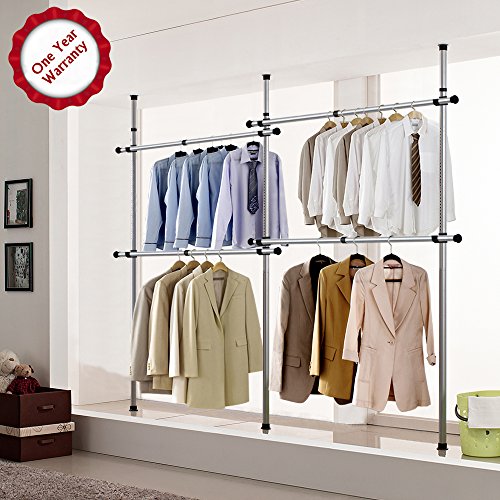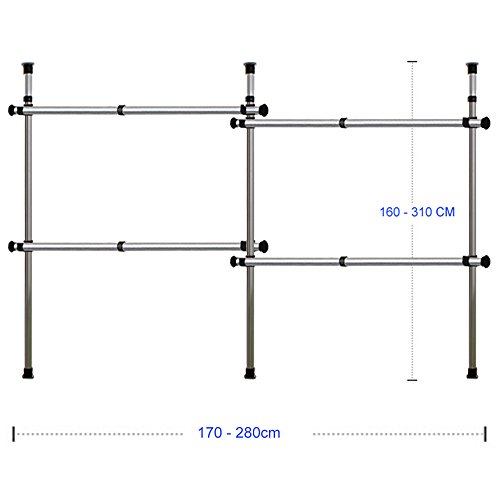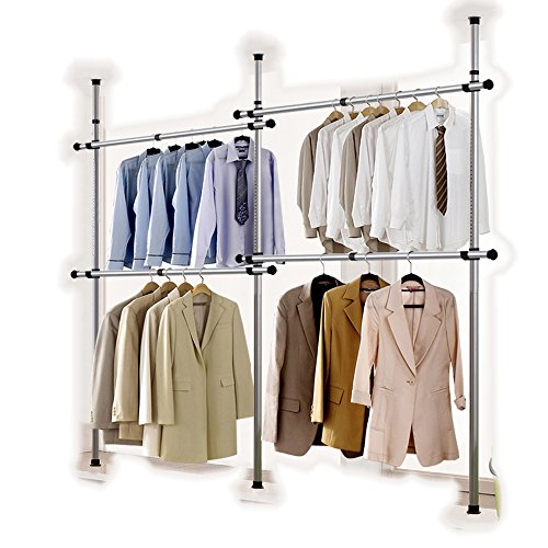 Goldcart 38mm Diameter Pole Long Crossbar Portable Indoor Garment Rack Tools-free DIY Coat Hanger Clothes Wardrobe 3 Poles 4 Bars. 90kg Loading per Bar. Free Reach Hook. Space Fit and Saver.[3804]