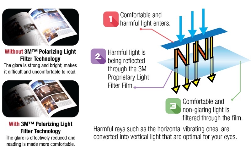 All models of our 3M™ Polarizing Light implements our very own 3M™ Polarizing Light Filter that you cannot find in other brands, the benefits are as follow: