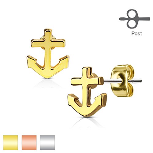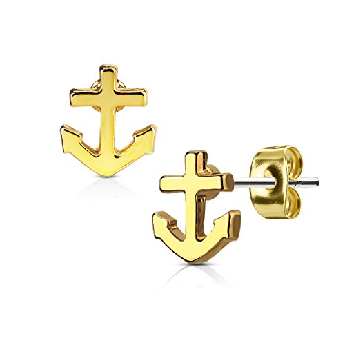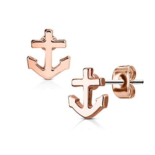 KULTPIERCING - Ohrringe Anker 1 Paar Ohrstecker 316 L Chirurgenstahl / Edelstahl Damen Schmuck Ohr-Schmuck Studs - Rosegold, Gold o. Silber
