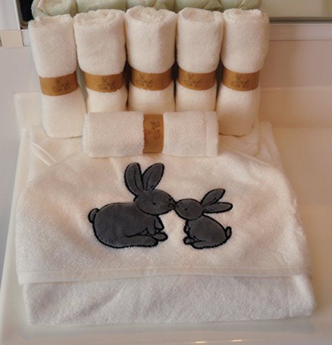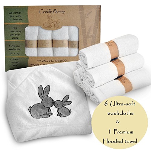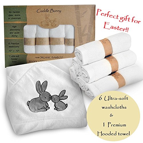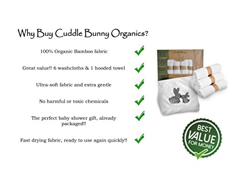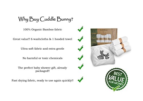 Studio : Huzhou Greenviews Commodity Co., Ltd. Publisher : Huzhou Greenviews Commodity Co., Ltd. Binding : Baby Product Product Description Each washcloth and hooded towel is lovingly designed and created with ultra-soft 100% Organic Bamboo. We use no AZO, harmful dyes, chemicals or toxins. Each washcloth and hooded towel is made with high quality fabric, has high absorbency and is quick drying. The eco-friendly, ultra-soft organic fabric make these washcloths the premium choice for little ones with sensitive or delicate skin. Each box set contains six generous 10" x 10" washcloths and one 30"x 30" hooded towel. Each washcloth and hooded towel set is gift packed with love and care. It is the ultimate gift for baby showers, birthdays, Easter or Christmas. The cute, adorable and soft bunny rabbit design on the hood of the towel, makes it fun and loveable for all babies and children. Protecting your little ones delicate skin is our first priority. Cuddle Bunny washcloths are naturally the perfect addition to every bath time. 0