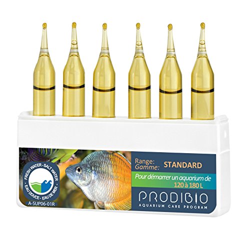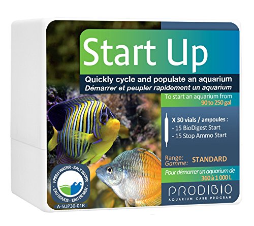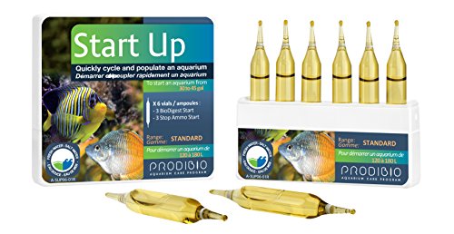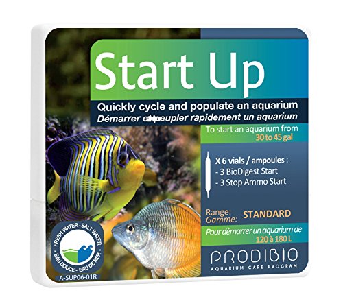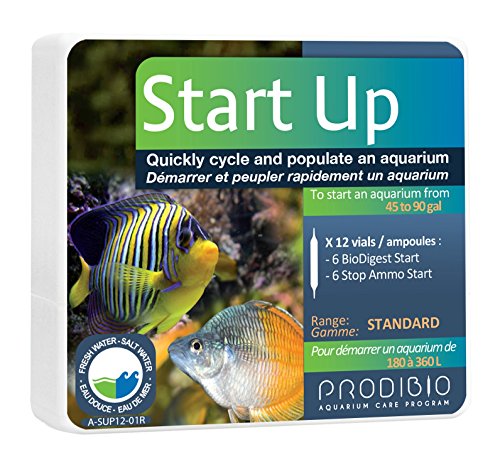 START UP combines STOP AMMO and BIODIGEST in the same-package. The-pack enables you to quickly get biological filtration underway and to introduce the first fish within a few hours. STOP AMMO is made from plant extracts which are chosen for their capacity to trap ammonia nitrogen. One of STOP AMMO'S properties is that it reduces nitrite production when a new aquarium is being started up with a specific adapted concentration. BIODIGEST is made up of nitrifying, nitrate reducing and facultative bacterial strains selected for their ability to convert ammonia into nitrites, nitrites into nitrates and nitrates into nitrogen. These bacteria (50 billion in each 1ml ampoule) work together with each strain finishing off the work started by the others. The products combined in START UP work together to enable you to quickly introduce 1/3 of your toughest fish into your new aquarium (after 4 hours for freshwater tanks and 12 hours for marine water tanks)Feature