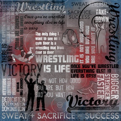 - Premium scrapbooking paper with Wrestling Is Life Collage design