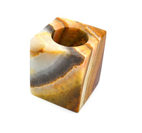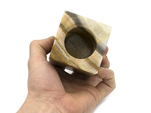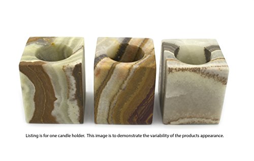 Verdant Green Stone Candle Holder for Tea Candles, Real Hand Carved Onyx - Rectangular Shaped, 3" tall - The Artisan Mined Series by hBAR