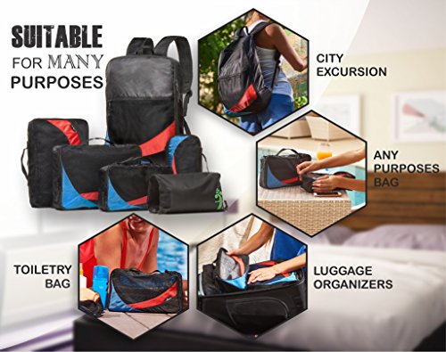 ENJOY COMFORT using any part of the set. For instance, 2 in 1 ultralight packing cube, back pack and weekender bag is suitable both for men and women. This black backpack is foldable and comfortable to take it for any travel. Being roomy enough to take anything you need, it stays really lightweight and you will not notice any extra weight.