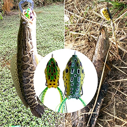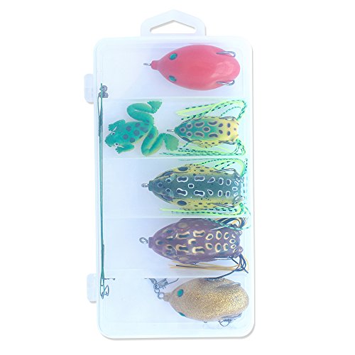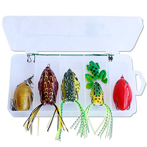-. Feature : LIFE-LIKE DESIGN: High-resolution body detail and life-like swimming actions, perfectly replicates a real frog,bring maximum performance, help to attract the target fishes / SNAG RESISTANT: Weedless design together with 2 hidden hooks of the frog lure makes it more snag resistant, no worry about hanging up by lily pads or weed beds / POWERFUL AND ATTRACTIVE: The metal attached on the abdomen of frog lure helps to fall naturally,3D eyes make it a powerful catching tool and bright colors to attract big fish / SUPER SOFT BODY: Made of environmentally friendly PVC, imitates the taste of frog and prevents the fishing hook from being spitted / Easy to Carry: 5 colors frog lures per set enough for your fishing adventure,all top water frog lures are packed in a small transparent box, which is easy to carry and convenient to use