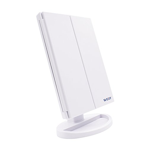 21pcs LED Lights: Built in adjustable lighted brightness, perfect fit for making up under the dark or poorly light condition. LED lights on/off controlled by the touch sensor switch and long press can switch to adjust lights brightness.
