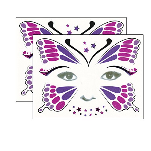 DaLin Day of the Dead Temporary Face Tattoo Kit for Halloween - Pack of 4 Kits, Black Lace, Butterfly