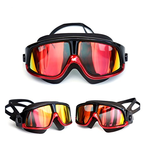 -. Feature : Our Goggles fit comfortably around your eye sockets and don't have to create too much pressure to keep the water out. Because the gaskets around the eyepieces are thick and curved in a way that will probably fit most faces / Our Mirrored lenses are made of high quality polycarbonate with 100% UV protection ,Anti-fog technology, which make you see clearly in water / High-class silicon rubber eyecup has high suction capabilities,which will keep water out of your goggles and assure you 100% waterproof / Soft,comfortable and stylish super big frame swim goggles-Perfect for Competitive Racing and Recreational Swimming / Package include: 1 x Swimming Goggles, 1 x Goggles Box.