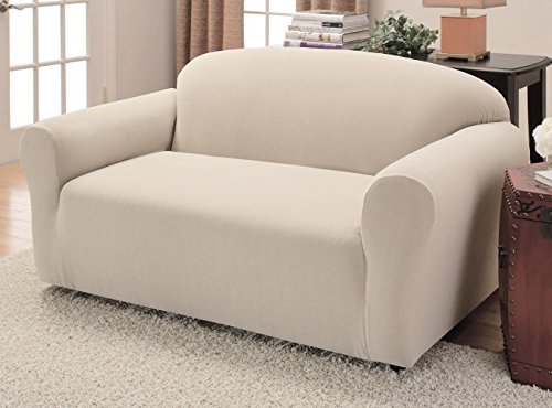 -. Title : JERSEY STRETCH Form Fit Couch Cover 2 Pc Slipcover Set=Sofa+Loveseat Covers-IVORY / BEIGE color
