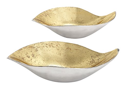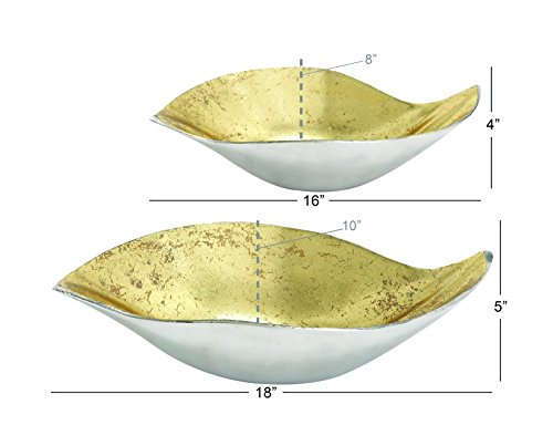Deco 79 Aluminum Bowl, 18 by 16-Inch, Gold, Set of 2
