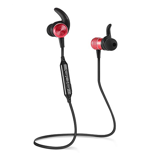 -. Feature : The cool running Bluetooth headset uses 6mm copper ring coils, strong rubidium boron magnets and high class carbon fiber diaphragms. Deep low frequency, solid medium frequency, more abundant high frequency details. Beautiful voice and music silkily fall in ears and keep in memories. With its IPX4 waterproof performance, you are able to enjoy sports with passion, no fear of sweat and rain! / Comfortable to Wear - Ergonomic ear hook design with silica gel weighs only 19g, lightweight and flexible for durability and portability. You won't get discomfort even after hours of use, perfect for jogging, running, hiking, etc. And multiple ear caps ensure the best possible fit for any set of ear / Magic Magnet Attraction Design - Its magnetic attraction design function can connect 2 earphones easily. Hanging on neck like a necklace when not in use could avoid loss meanwhile it could be a cool amazing accessories for fashion users / Long Battery Life - Efficient and low power consumption chips bring longer battery life. Built-in 60mAh li-ion battery, 4h music time, 4.5h talking time, 2h charging time and up to 180h standby time / Fast Connection - With Bluetooth 4.2 technology is faster than other devices, the transmission distance is up to 10m. Enjoy perfect compatibility with iPhone, iPad, Android smartphones and tablets, windows devices, and all popular Bluetooth devices