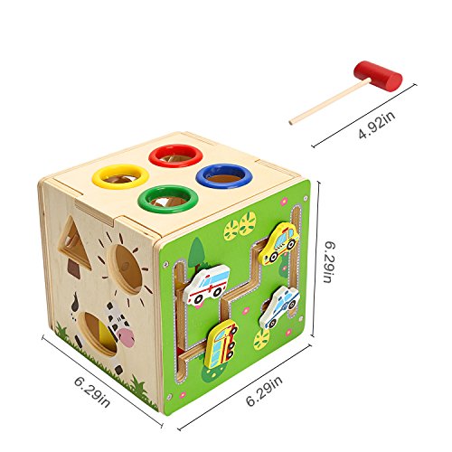-. Feature : Multifunctional Activity Cube: Toddlers can play shape sorter,maze, take a race,beat the ball via the hammer with friends or parents on our activity cube / Pass CPSC Certification: Helps toddlers develop color and shape recognition skills; For ages above 3 years old kid; Adopt Non-toxic finishes and child safe materials / Play&Learn : Develop kid's cognitive ability, cultivate kid's eye and hand coordination ability, train kid fingers muscle flexibility / Best Gift for Kids: Best choice as kids' Christmas/ birthday gift. It is also a good parent-child game toy / Our Guarantee-Any dissatisfaction will get a full refund or replacement and friendly customer service