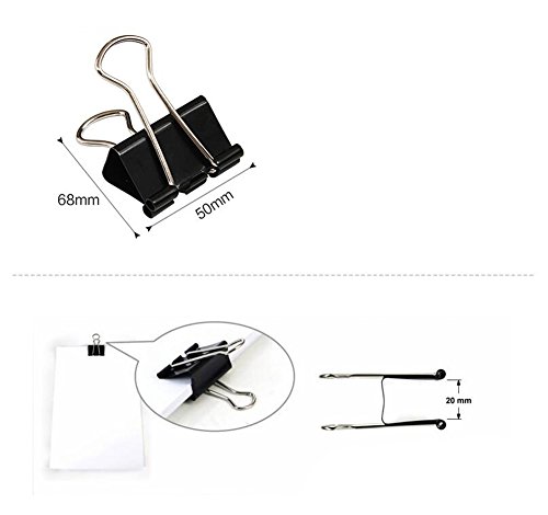 Assorted Size Black and Silver Steel Power Binder Clips/Paper Clips/ Clamps with a Box Office File Paper Organizer (Width:50mm - 12pcs)