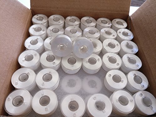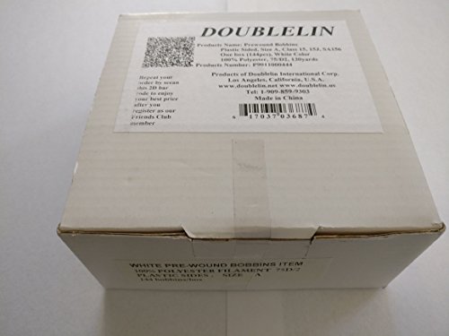 Doublelin, Prewound bobbins, Plastic sided, SIZE A, Class 15, 15J, Brother SA156, 144pcs, White color, 100% Polyester, 75/D2 140 yards, Works on Babylock, Berenia, Brother, Janome, Juki, Pfaff, Singer