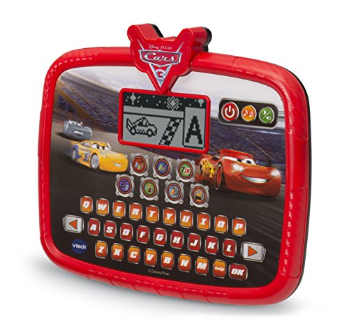 Help Lightning McQueen win the big race with the Race & Learn Tablet by VTech! Interact with your favorite Cars 3 characters as they come to life in fun and engaging activities on the LCD screen. Seven exciting games introduce letters, objects, spelling, number order, counting, logic and more. Find letters to help Lightning McQueen gear up for the race, spell out words on road and crowd signs, count objects as you help clean up Doc Hudson's garage, spell out words to pass other cars in the race and much more! Press the character buttons to meet and interact with Lightning McQueen and his friends. The tablet also introduces beginning typing with a QWERTY keyboard. Get on the fast track to learning with Lightning McQueen!Feature