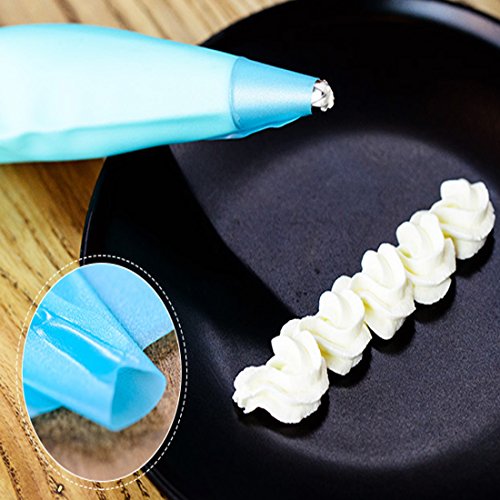 - Two 12'' reusable silicone pastry bags are support different color icing while decorating cakes or cupcakes. 2 Reusable plastic couplers are easy to switch quickly from one tip to another tip; 2 flower nails used as a decorative bottom bracket to decorate icing flower.
