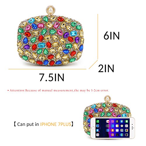 -. Feature : { Occasion}: Banquets, prom, cocktail parties and other special occasions, meetings with friends, family reunion, dating and other daily occasion. / { Feature }: Colorful beaded with various mini rhinestones decorated in the surface both front and back sides. Special design of the pearl beaded hasp full of the rhinestones. / { Material }: The entire structure is made of superior hardware frame construction, the lining is made from satin, which feels soft and comfortable when you take it. / { Flexibility }: The detachable chain-strap for you to choose to be clutched by hand or hung on shoulders. / { Capacity }: 7.5" x 2" x 6"( L x H x W ), nice size which can fits in iPhone 7 plus and left some spaces to add small things.