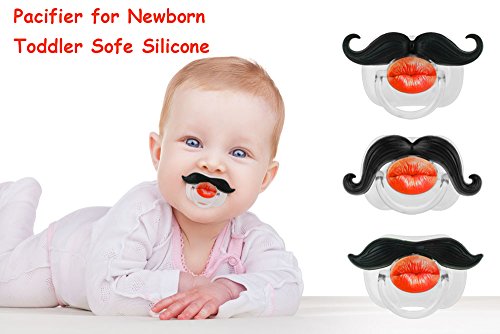 -. Title : 3Pcs Mustache Pacifier for Baby, KOMIWOO Funny Gentleman Mustache Lip Pacifier Cute Novelty Baby Stuff for Newborn Infant, BPA Free Latex Free Made with Soft Silicone - Great Baby Shower Gift!