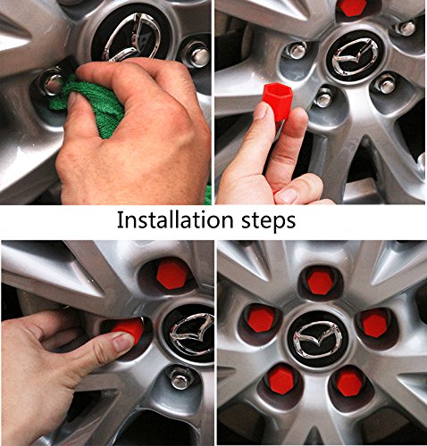 17mm Red Silicone Car Wheel Hub Lugs Nuts Bolts Cover Protective Cap, Dust Protective Tyre Valve Screw Cap Cover 20pcs/Set