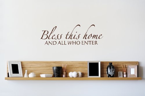 Design with VinylBless This Home, & All Who Enter Welcome Sign Picture Art Inspirational Scripture Bible Quote Peel & Stick Sticker Wall Decal Size: 8x20 Color: BrownBrown