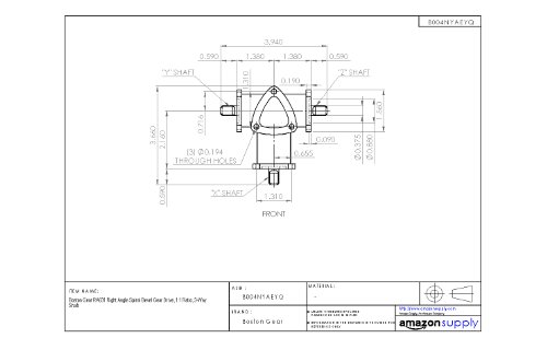 Boston Gear RA631 Right Angle Spiral Bevel Gear Drive, 1:1 Ratio, 3-Way Shaft