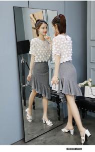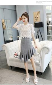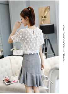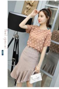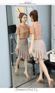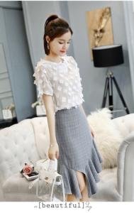 フラワートップス スリットスカート フレア フリル アシンメトリー マーメイドスカート 半袖 シフォントップス プチプラ