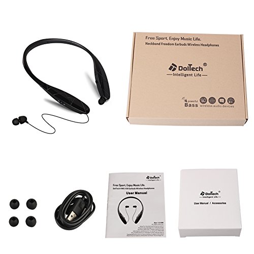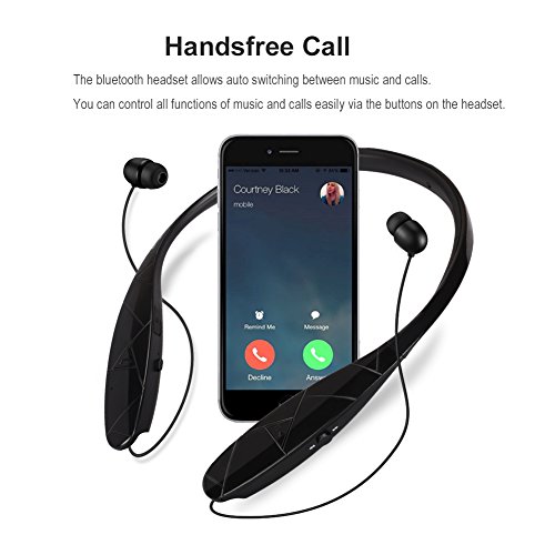 Bluetooth Headphone,Junetek V4.1 Wireless Neckband Headset Sweetproof Sports Earphone Stereo Noise Cancelling Earbud with Mic (black)