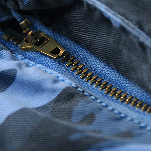 -. Feature : Middle waist, zip closure / Slant hand pockets, flap rear pockets / Colorful camo print/ Straight leg, adjustable tabs at leg opening / Cold hand / machine wash separately / Notice: Belt not included, please buy separately if needed