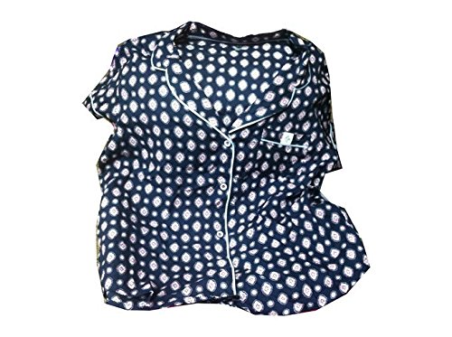 Tommy Hilfiger Short Sleeve Button Down Pajama Top Navy Rose (Large)